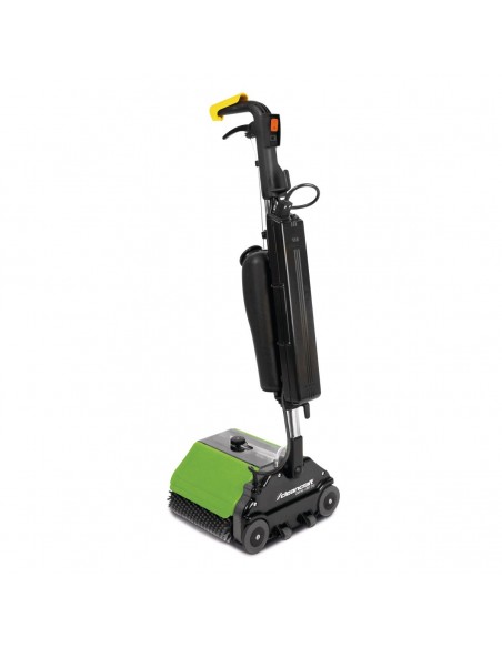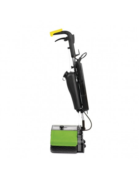 - Składany dyszel ułatwia manewrowanie maszyną we wszystkich kierunkach, umożliwiając pracę blisko krawędzi, nawet w ograniczonych przestrzeniach, takich jak pod stołami warsztatowymi lub pod stołami