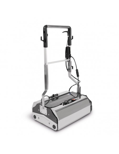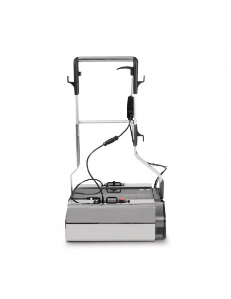 - Dwustronny dyszel ułatwia manewrowanie maszyną we wszystkich kierunkach, umożliwiając pracę blisko krawędzi nawet w ciasnych pomieszczeniach,