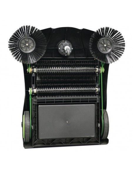 - Dwie szczotki boczne zamiatają gruz przed tandemowymi walcami zamiatającymi, które transportują go z góry do kosza