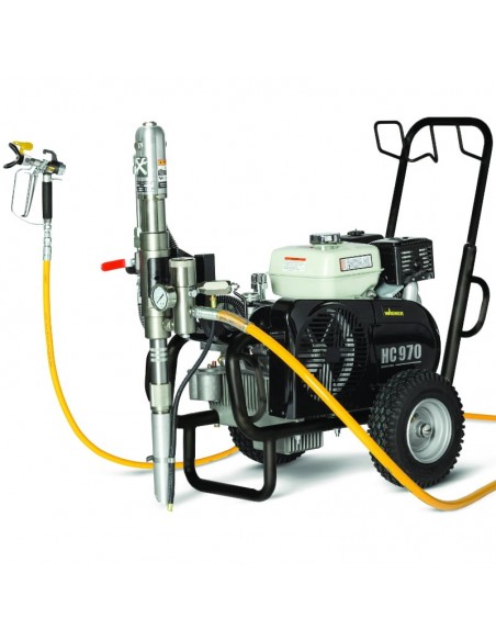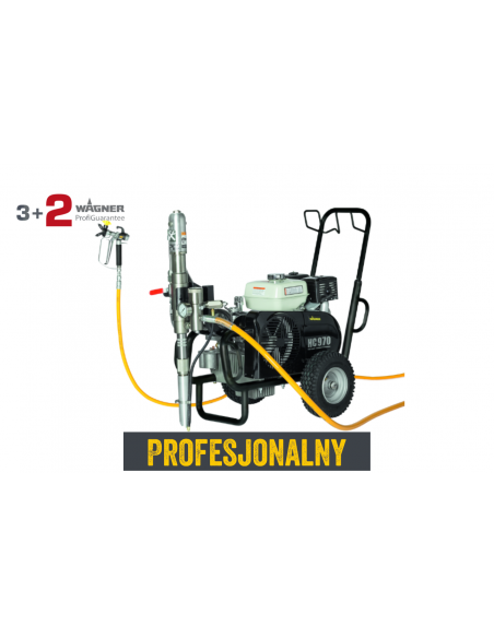 HeavyCoat 970G hydrodynamiczny agregat malarsko - szpachlarski, przeznaczony jest do malowania wszystkimi rodzajami farb (dyspersyjne, lakiery, bejce, farby podkładowe, olejne, emulsje, farby lateksowe, silikonowe, silikatowe, elewacyjne, systemy ciężkiej antykorozji, grunty bitumiczne, materiały bitumiczne jednoskładnikowe).