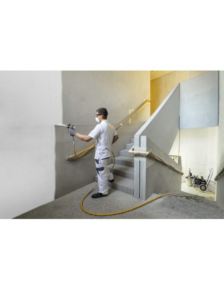 Wysokowydajna pompa hydrauliczna zapewnia długotrwałą i elastyczną pracę pompy, nawet przy stosowaniu materiałów trudnych do aplikacji, takich jak szpachle, powłoki ognioochronne, materiały bitumiczne.