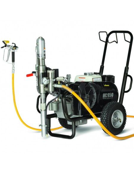 HeavyCoat 950G hydrodynamiczny agregat malarsko - szpachlarski, przeznaczony jest do malowania wszystkimi rodzajami farb (dyspersyjne, lakiery, bejce, farby podkładowe, olejne, emulsje, farby lateksowe, silikonowe, silikatowe, elewacyjne, systemy ciężkiej antykorozji, grunty bitumiczne, materiały bitumiczne jednoskładnikowe).